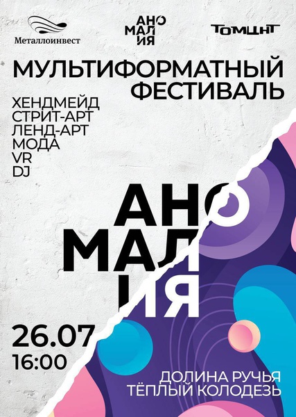 26 июля в Долине ручья Тёплый Колодезь пройдёт фестиваль «АНОМАЛИЯ» — место, где искусство и музыка создадут уникальную атмосферу!